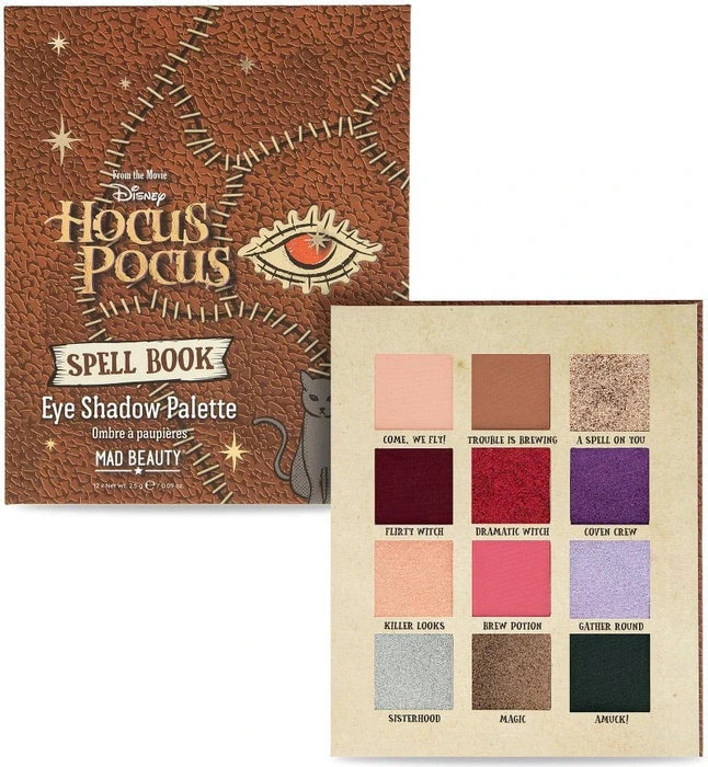 Gather round and revel in the beauty of this wicked spell book inspired eyeshadow palette. Open up to reveal 12 pigment rich shades in a range of dazzling shimmers, dramatic mattes and glistening glitters all designed to conjure up a range of head turning looks. Features a magnetic lid for secure closure and a cosmetic mirror.