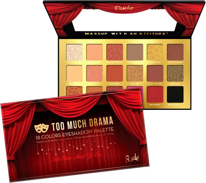 Too much is never enough! That is why Rude Cosmetics have created the most drama filled palette. A magnificent combination of highly saturated and easy to blend mattes, chromes, and metallics, to perfectly fill your needs from day to night!