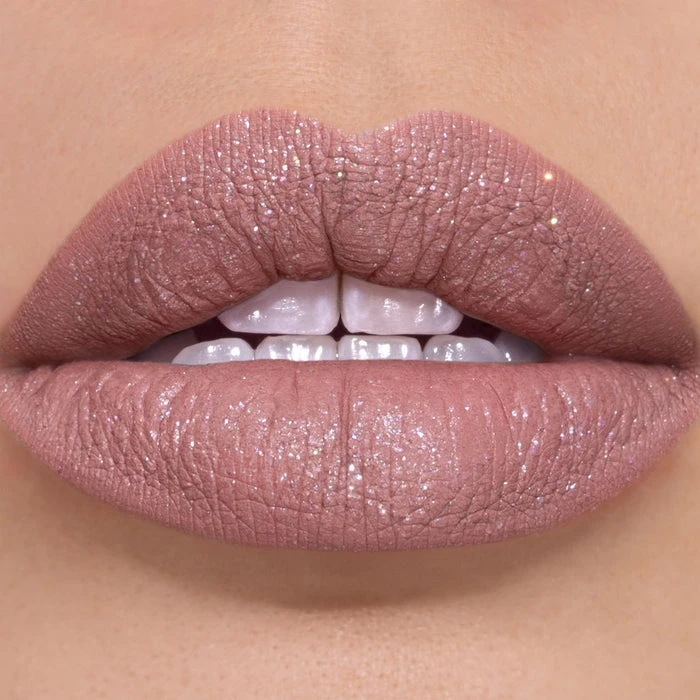 From Sugarpill’s Love Bites Collection comes this liquid lip colour in a rosy pale nude with rainbow sparkles