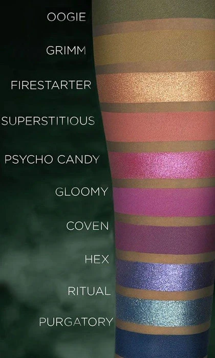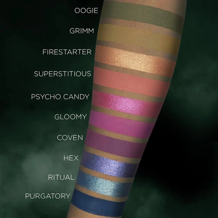 Purgatory/Gloomy/Coven: (1.5g)/(1.5g)/(0.5g) Talc, Zea Mays (Corn) Starch, Mica, Dimethicone, Zinc Stearate, Caprylic/Capric Triglyceride, Silica, Isononyl Isononanoate, C10-18 Triglycerides, Caprylyl Glycol, Phenoxyethanol, Dimethiconol, Dehydroacetic Acid, Hexylene Glycol, Diethylhexyl Syringylidenemalonate. May Contain/Puet Contenir (+/-): Iron Oxides (CI 77499), Titanium Dioxide (CI 77891), Blue 1 Lake (CI 42090), Ferric Ammonium Ferrocyanide (CI 77510), Manganese Violet (Ci 77742), Red 28 Lake (Ci 45410), Red 7 Lake (CI 15850), Ultramarines (CI 77007).